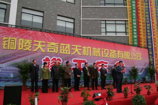 2008年3月28日上午9:58分,公司新廠區(qū)竣工典禮在經(jīng)濟開發(fā)園區(qū)隆重舉行。銅陵市委書記姚玉舟、市委常委副市長鄒震、市委常委市委秘書長李敬明、市人大副主任唐思定、市政協(xié)副主席王剛英、銅陵市紀委副書記汪曉蘭、市經(jīng)濟技術(shù)開發(fā)區(qū)管委會主任張志文、帶式輸送機協(xié)會秘書長李群,江蘇南方天奇集團公司董事長、江蘇天奇物流系統(tǒng)工程股份有限公司創(chuàng)始人黃偉興先生,江蘇天奇物流系統(tǒng)工程股份有限公司總經(jīng)理、銅陵天奇藍天機械設(shè)備有限公司董事長楊雷等相關(guān)領(lǐng)導(dǎo)出席了竣工典禮。出席2007年度天奇股份先進表彰大會代表們、供應(yīng)商、客戶代表以及社會各界友人近200人參加了大會。典禮儀式由銅陵天奇藍天機械設(shè)備有限公司總經(jīng)理汪國春主持。