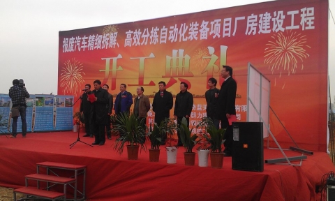 2012年12月10日,銅陵天奇藍(lán)天機(jī)械設(shè)備有限公司彩旗飄揚(yáng),氣球飛舞,氣球下方的“凝心聚力謀行業(yè)發(fā)展 爭創(chuàng)佳績促企業(yè)跨越”“加強(qiáng)科技合作與交流 走開放型科技發(fā)展之路”“以黨的十八大精神為統(tǒng)領(lǐng) 推進(jìn)企業(yè)跨越發(fā)展 科學(xué)發(fā)展 和諧發(fā)展”“推進(jìn)綠色發(fā)展、循環(huán)發(fā)展、低碳發(fā)展 加強(qiáng)生態(tài)文明建設(shè)”的標(biāo)語,在空中格外醒目。 11點(diǎn)08分,“報(bào)廢汽車精細(xì)拆解、高效分揀自動化裝備項(xiàng)目廠房建設(shè)工程”儀式正式開始。儀式由公司總經(jīng)理錢立華先生主持。儀式上天奇藍(lán)天董事長汪國春先生作項(xiàng)目介紹并致辭。工程施工單位江西省群力建設(shè)有限公司副總經(jīng)理徐丙洋先生也作了發(fā)言,表示一定按質(zhì)按期完成此項(xiàng)工程。銅陵市經(jīng)濟(jì)技術(shù)開發(fā)區(qū)管委會主任王毅軍先生也發(fā)表講話,對項(xiàng)目開工表示祝賀,希望項(xiàng)目建設(shè)各方精心組織、科學(xué)調(diào)配、保質(zhì)保量,完成建設(shè)任務(wù),希望項(xiàng)目盡早建成、投產(chǎn)。 最后,天奇股份創(chuàng)始人黃偉興先生宣布開工令,在陣陣掌聲和轟鳴的禮炮聲中,本次開工慶典儀式圓滿劃上句號。 “報(bào)廢汽車精細(xì)拆解、高效分揀自動化裝備項(xiàng)目廠房建設(shè)工程”是同日開工的“銅陵市長三角區(qū)域性汽車產(chǎn)品回收利用再制造產(chǎn)業(yè)基地項(xiàng)目”的配套項(xiàng)目。項(xiàng)目的開工是企業(yè)積極響應(yīng)政府大力發(fā)展汽車循環(huán)經(jīng)濟(jì)的號召,不斷擴(kuò)大生產(chǎn)經(jīng)營規(guī)模,加大技術(shù)改造投入,走科技進(jìn)步與創(chuàng)新之路的結(jié)果;更是天奇股份支持地方經(jīng)濟(jì)建設(shè),轉(zhuǎn)變觀念、順勢而謀之為。