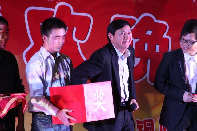 今年,在公司領(lǐng)導(dǎo)的支持下,增發(fā)了50多個(gè)幸運(yùn)獎(jiǎng),大大提高了中獎(jiǎng)率,也為新年討個(gè)好彩頭。有獎(jiǎng)猜猜猜環(huán)節(jié)讓全場(chǎng)達(dá)到一個(gè)小高潮,猜歌、猜圖片,猜成語(yǔ)讓場(chǎng)上場(chǎng)下互動(dòng)起來(lái)了,知道答案的觀眾高高地舉起手,一個(gè)個(gè)都恨不得站桌子上,好讓主持人把話筒遞過(guò)來(lái),讓自己說(shuō)出答案,小孩子們更是感興趣,都跑出席位,來(lái)到臺(tái)前爭(zhēng)搶機(jī)會(huì)說(shuō)答案,他們除了想告訴大家,我聰明,知道答案之外,其實(shí)心里惦想著待會(huì)能從錢(qián)箱里抓出多少錢(qián),醉翁之意不在酒,在閃亮亮的硬幣啊。