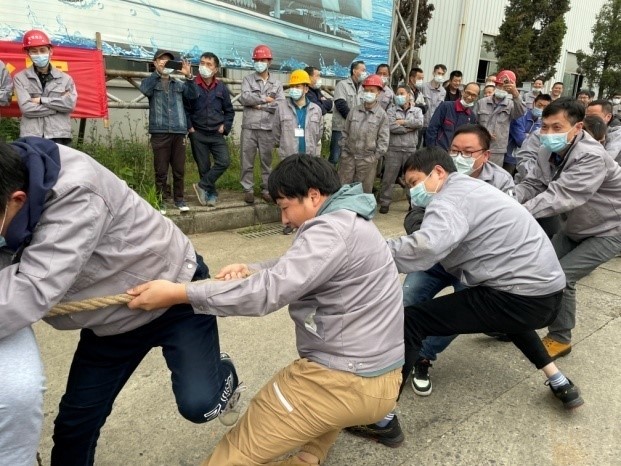 為豐富全體職工的精神文化生活,增強(qiáng)集團(tuán)公司凝聚力,公司于 2022年4月30日舉辦慶“五一〞拔河比賽。每支代表隊(duì)都顯示出最強(qiáng)的比賽陣容,齊心協(xié)力,勇爭第一。 當(dāng)比賽的哨聲響起,隊(duì)員們口中一起高呼著“一二!一二”,雙手緊握長繩,憋足了勁拼命往后拉,公司領(lǐng)導(dǎo)也在隊(duì)伍旁邊助陣加油,未參賽的員工自發(fā)組成啦啦隊(duì)為比賽隊(duì)員吶喊加油,號(hào)子聲、吶喊聲,此起彼伏,飄蕩在上空。